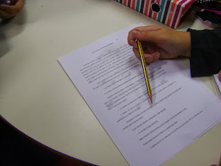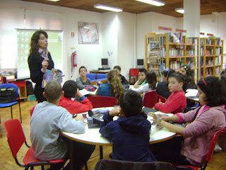 Utilizando um engraçado conto da nossa tradição oral, recontado por João Pedro Mésseder, a professora bibliotecária fez a sua leitura integral e, de seguida, lançou um desafio aos alunos de 5º ano: entregou-lhes o texto com intrusos e estes tiveram de os identificar, tendo por base a leitura que escutaram e a coerência textual.